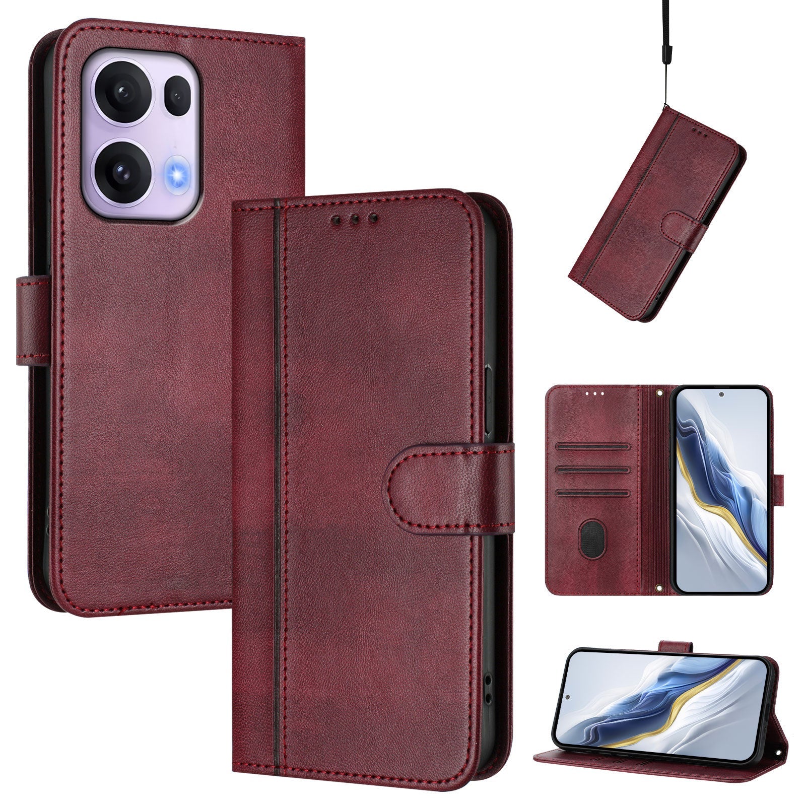 For Oppo Reno13 Pro 5G Cases Wallet Stand Retro Texture Leather Phone Cover with Lanyard - Wine Red