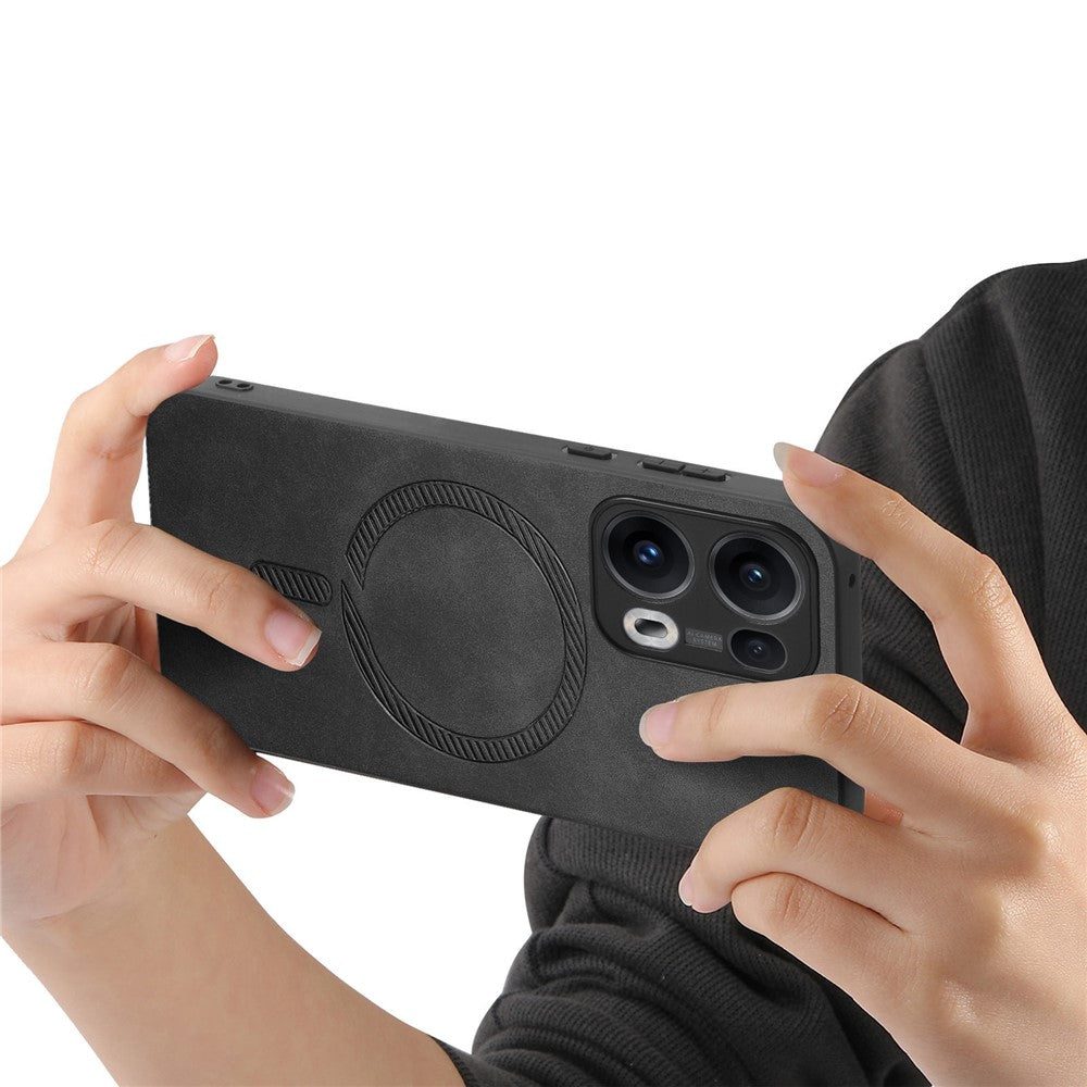 For Oppo Reno13 Pro 5G Leather Back Case Compatible with MagSafe Skin-touch Phone Cover - Black