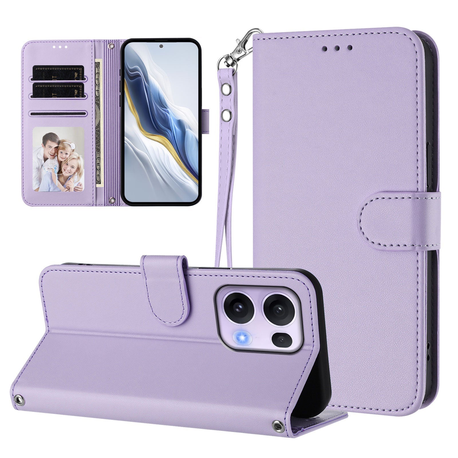 For Oppo Reno13 Pro 5G Leather Case Wallet Stand Phone Cover with Wrist Strap - Light Purple