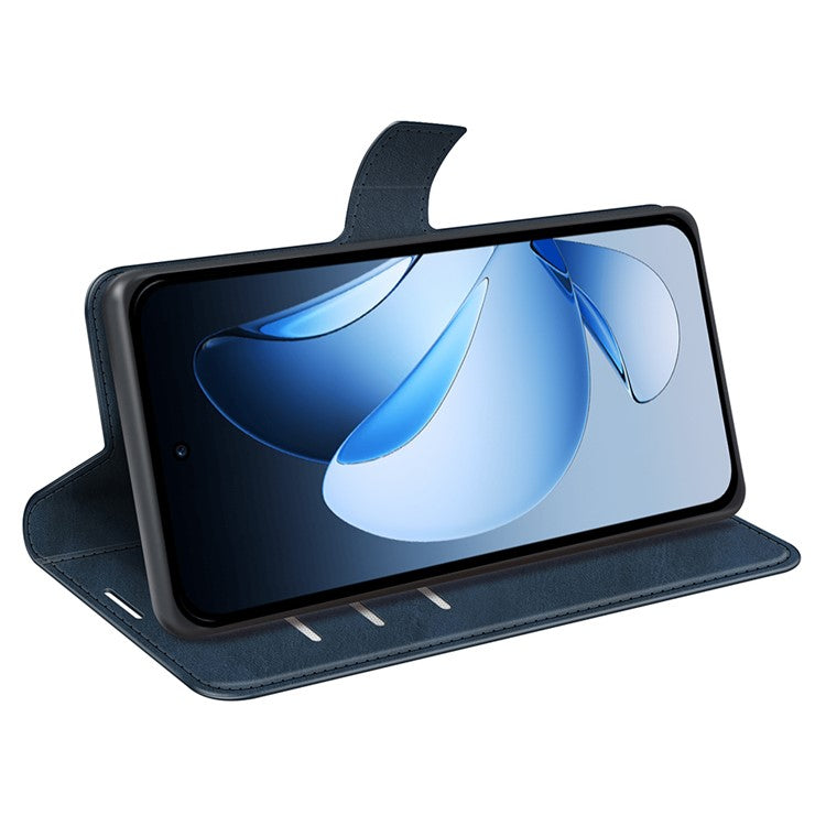 For Oppo Reno13 Pro 5G Stand Case Anti-Scratch Calf Texture Leather Phone Cover - Blue