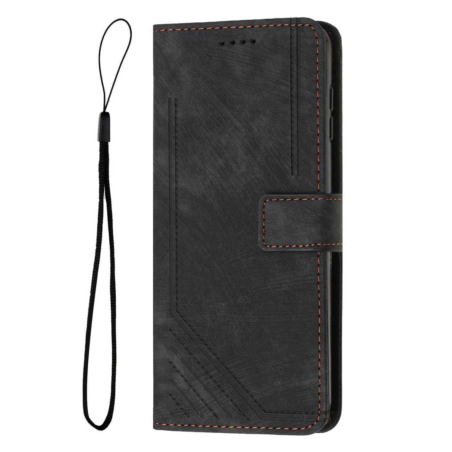 For Oppo Reno14 Pro 5G (China) / Oppo Reno14 Pro 5G (Global) Stand Case Imprinted Lines Leather Phone Cover - Black