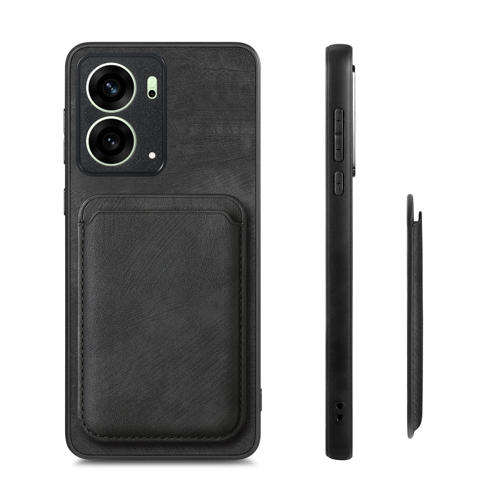 For Oppo Reno4 5G / Oppo Reno13 5G (Global) Case Compatible with MagSafe Leather Back Cover with Detachable Card Holder - Black