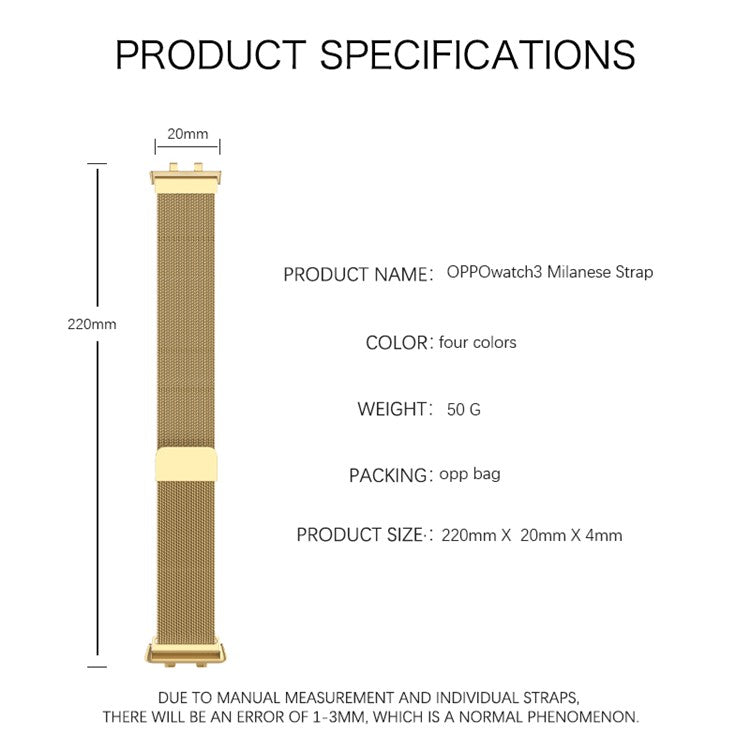 For Oppo Watch 3 Milanese Metal Mesh Strap Replacement Smart Watch Band - Rose Gold