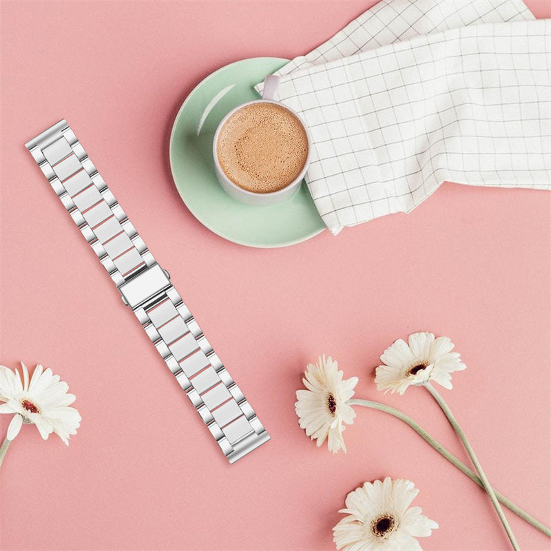 for Pebble Time Round/Pebble 2 Resin + Stainless Steel Durable Bracelet Smart Watch Wrist Band - Silver/White