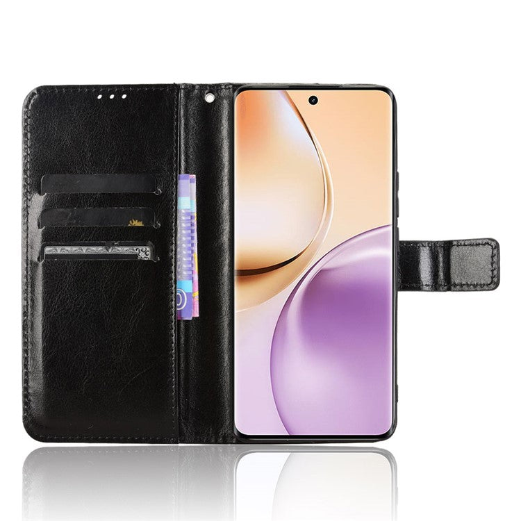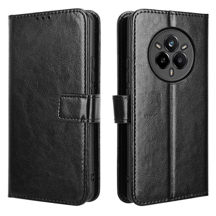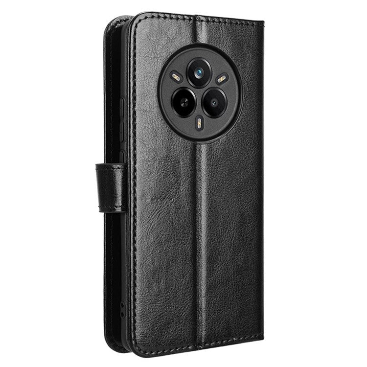 For Realme 14 Pro 5G Case Crazy Horse Texture PU Leather Phone Wallet Cover - Black