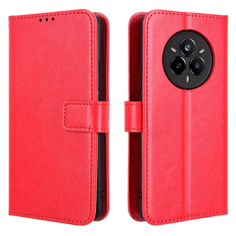 For Realme 14 Pro 5G Case Crazy Horse Texture PU Leather Phone Wallet Cover - Red