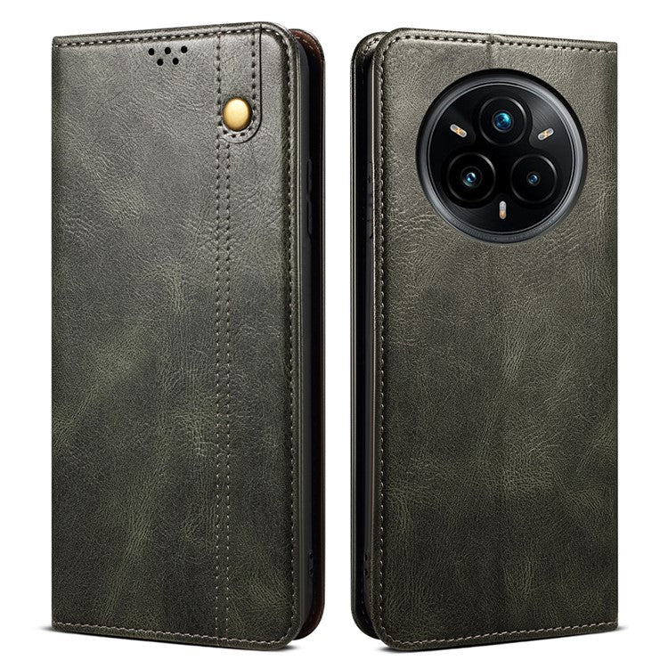 For Realme 14 Pro 5G Case Crazy Horse Texture Waxy Leather Wallet Stand Phone Cover - Green