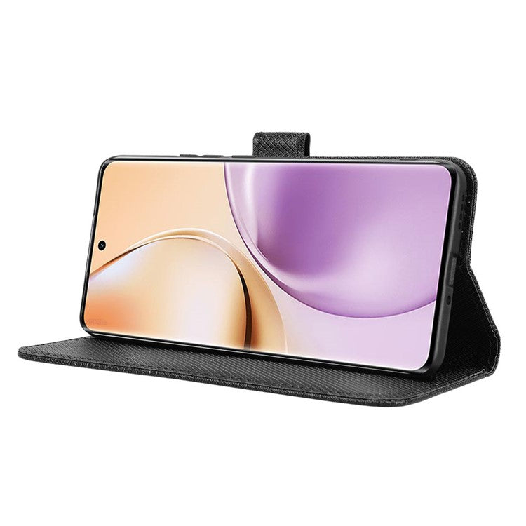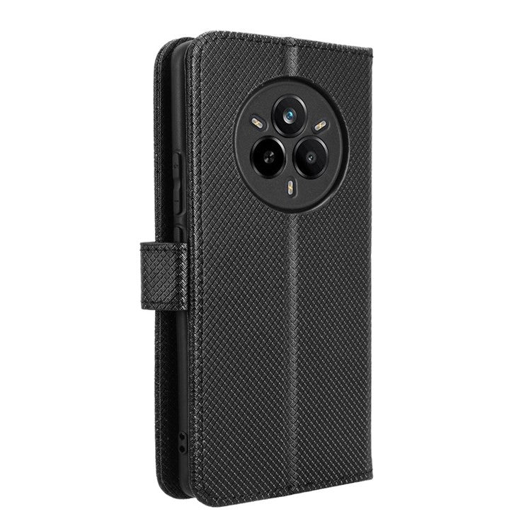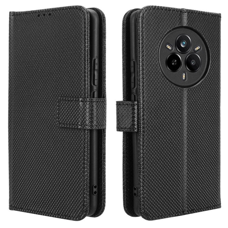 For Realme 14 Pro 5G Case PU Leather Diamond Texture Wallet Phone Cover - Black
