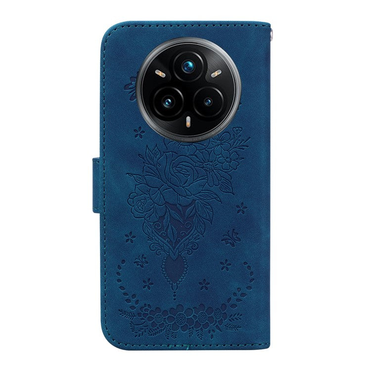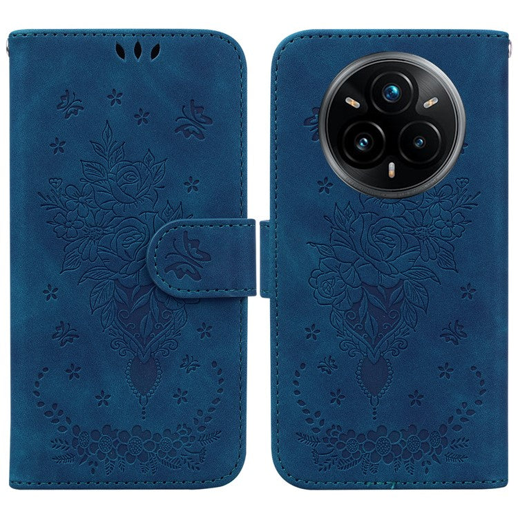 For Realme 14 Pro+ 5G Case PU Leather Wallet Phone Cover Butterfly Flower Imprint - Blue