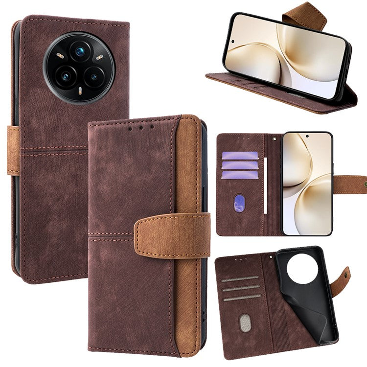 For Realme 14 Pro+ 5G Case RFID Blocking Color Splicing PU Leather Wallet Phone Cover - Brown