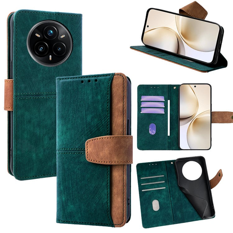 For Realme 14 Pro 5G Case RFID Blocking Color Splicing PU Leather Wallet Phone Cover - Green
