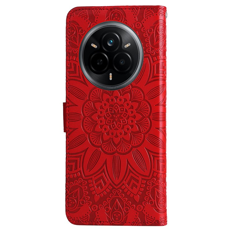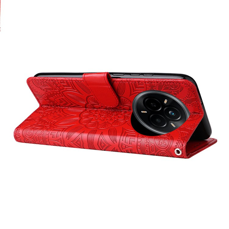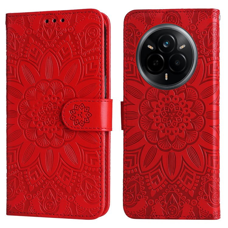 For Realme 14 Pro 5G Case Sunflower Imprint Leather Wallet Phone Cover - Red