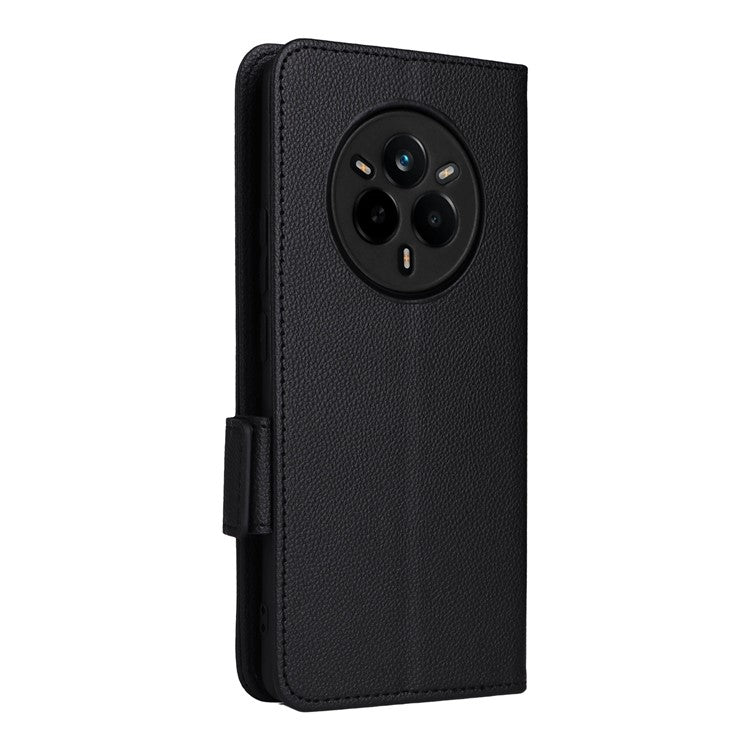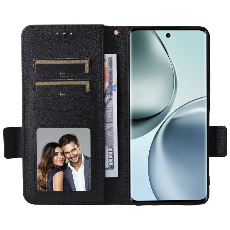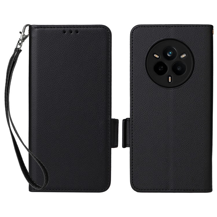 For Realme 14 Pro 5G Case Wallet Flip Litchi Texture PU Leather Phone Cover - Black