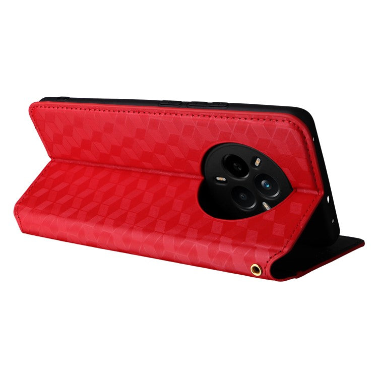 For Realme 14 Pro 5G Case Wallet Rhombus Imprinted Leather Phone Cover - Red