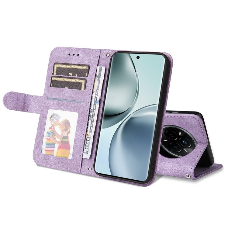 For Realme 14 Pro 5G Case Wallet Skin Touch Leather Phone Cover Tree Pattern Hardware - Purple