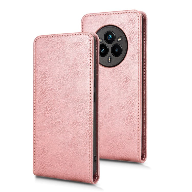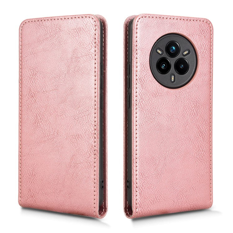 For Realme 14 Pro+ 5G Case with Card Slot Magnetic Vertical Flip Leather Phone Cover - Rose Gold