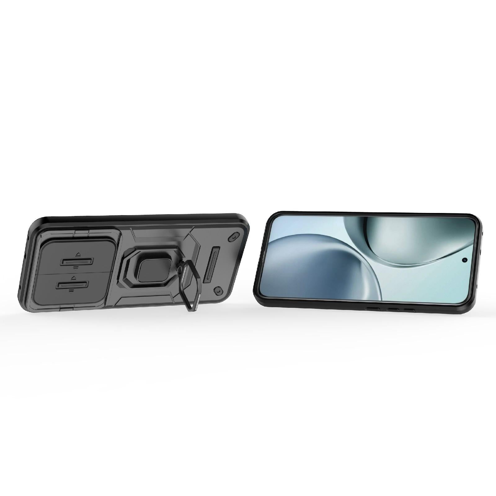 For Realme 14 Pro+ 5G Sliding Camshield TPU + PC Shockproof Phone Case with Holder(Black)