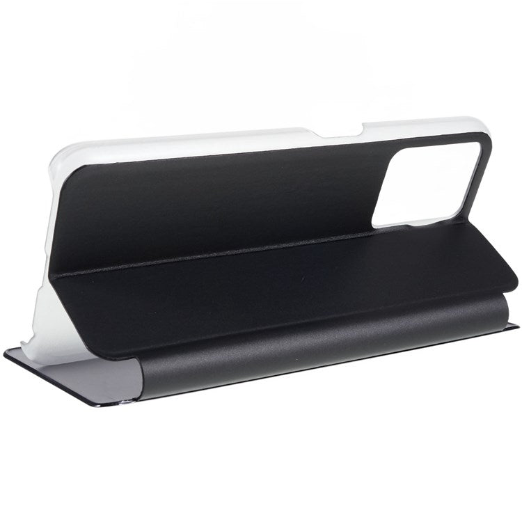 For Realme 9 Pro 5G / 9 5G / 9 5G / V25 5G Drop-proof Smart View Window Mirror Case Electroplate Stand PU Leather Full Body Protective Cover - Black