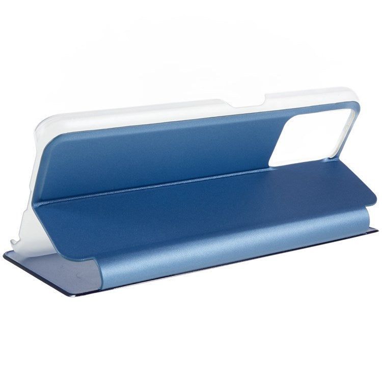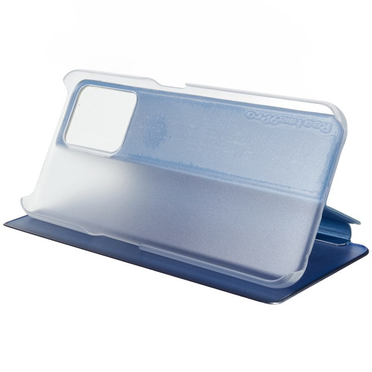 For Realme 9 Pro 5G / 9 5G / 9 5G / V25 5G Drop-proof Smart View Window Mirror Case Electroplate Stand PU Leather Full Body Protective Cover - Blue