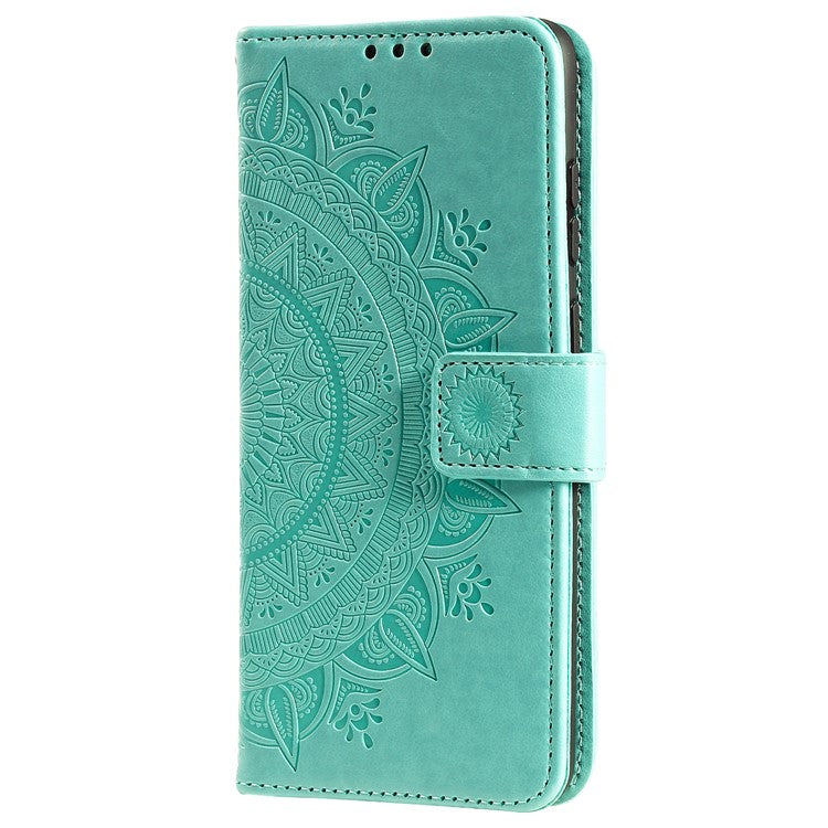 For Realme 9i / Oppo A36/A76 Imprinted Mandala Flower PU Leather Cover Viewing Stand Wallet Folio Flip Case with Wrist Strap - Green