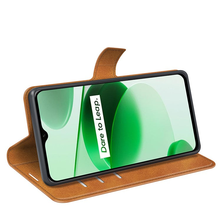 For Realme C35 Magnetic Folio Phone Cover Full Protection Textured PU Leather Wallet Stand Case - Yellow