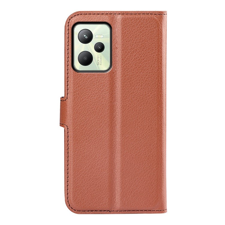 For Realme C35 Wallet Anti-scratch Litchi Texture PU Leather Flip Cover Stand Magnetic Closure Anti-dust Phone Case - Brown