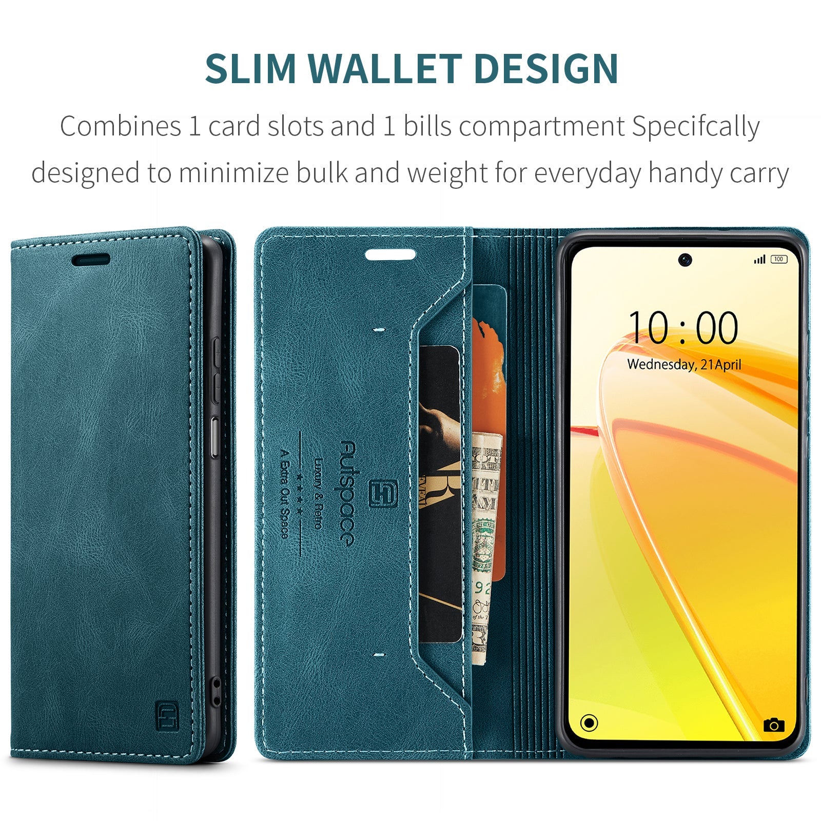 For Realme C55 4G Wallet Case AUTSPACE A01 Leather Stand Cover with RFID Blocking Card Holder - Blue