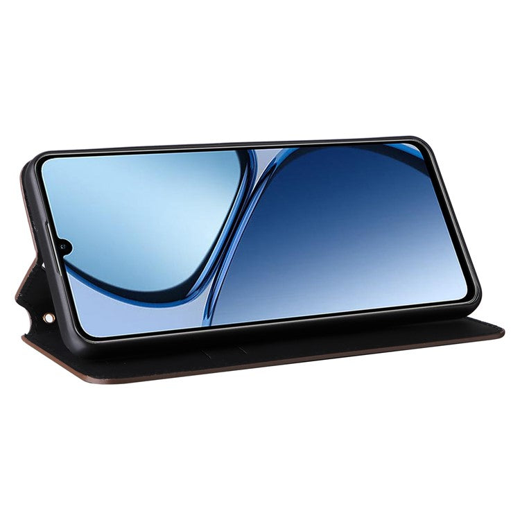 For Realme C63 4G / Narzo N63 4G / C61 4G Stand Case PU Leather Phone Cover Rhombus Pattern - Brown