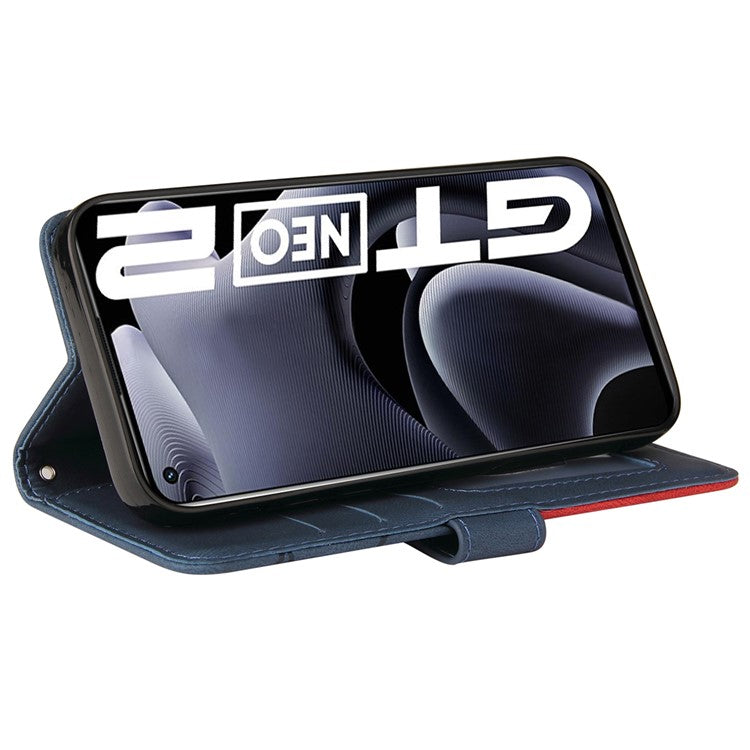 For Realme GT Neo2 5G/GT Neo 3T 5G KT Leather Series-1 Stylish Two-color Splicing Style Anti-Scratch TPU+ PU Leather Wallet Design Phone Case with Stand - Blue