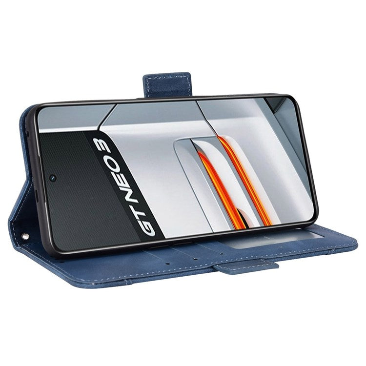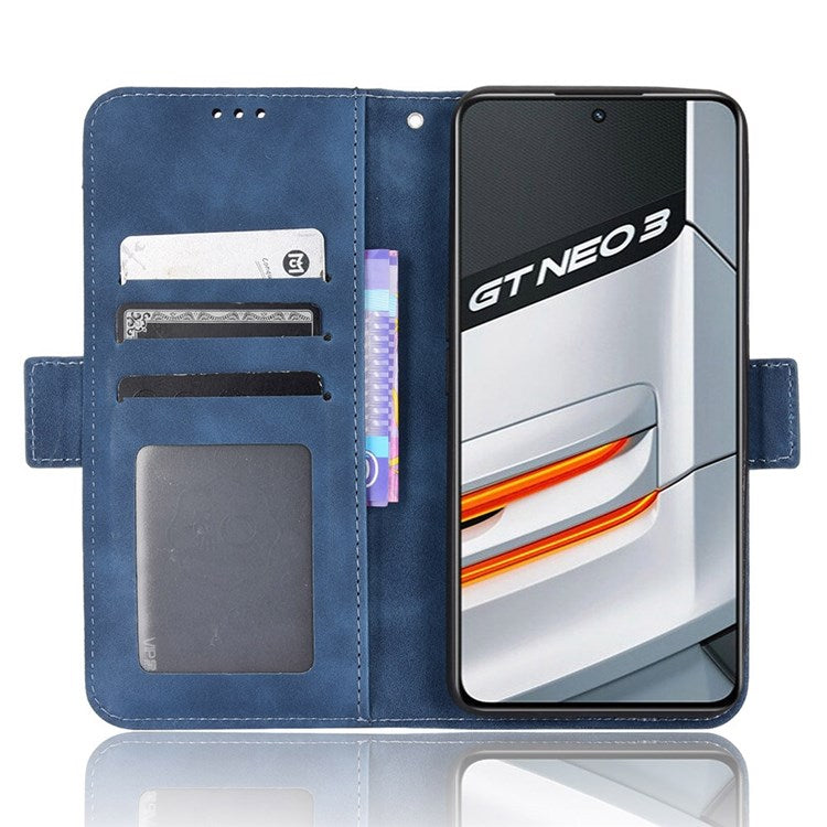 For Realme GT Neo3 Multiple Card Slots PU Leather Anti-scratch Wallet Case Mobile Phone Stand Cover - Blue