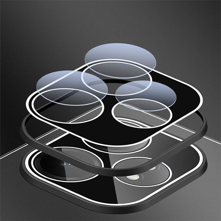 - The lens frame with full coverage tempered glass lens film for camera protection