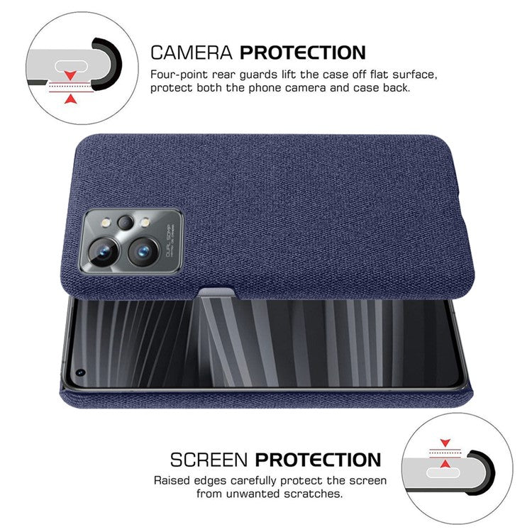 For Realme GT2 Pro Cloth Coated Hard PC Shell Ultra Thin Slim Protective Phone Cover - Blue