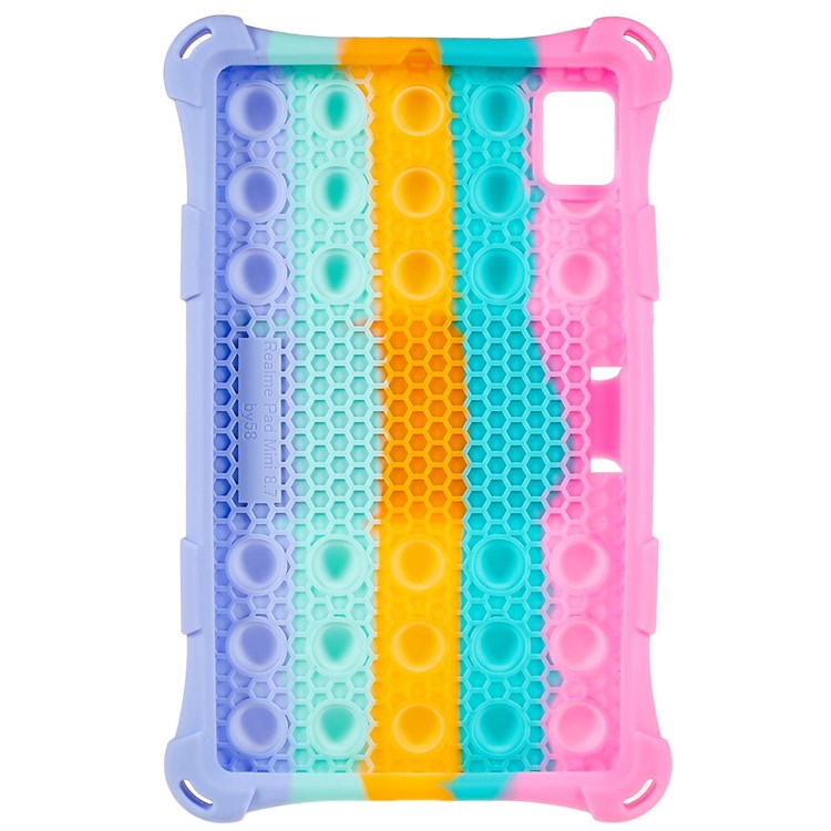 For Realme Pad Mini Fidget Pop Toys Push It Bubble Shockproof Soft Silicone Protective Case Tablet Shell with Built-in Kickstand - Multi-color