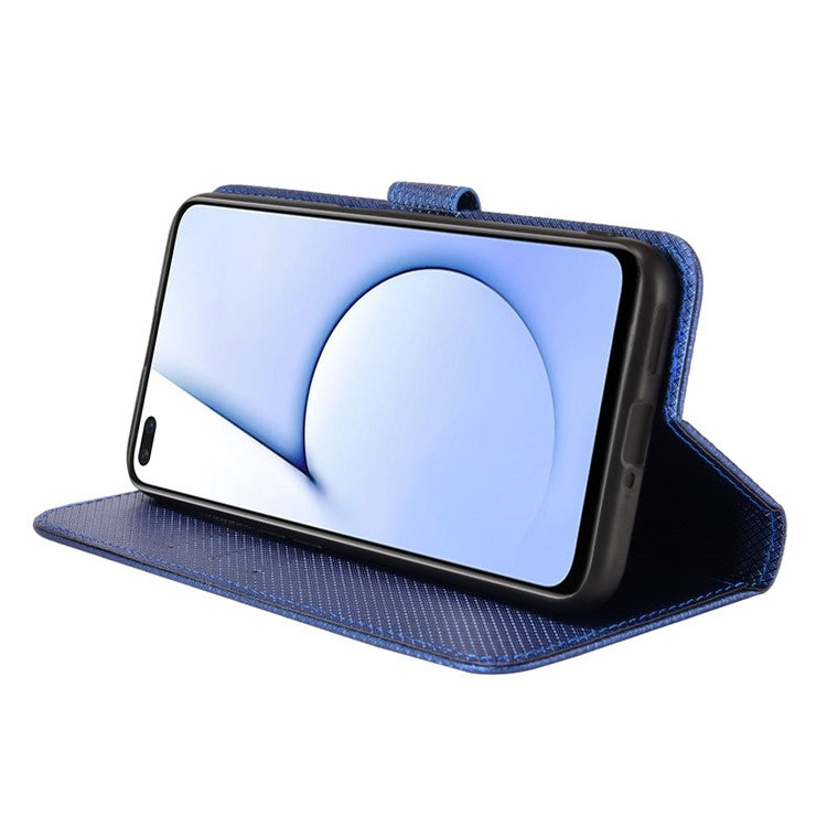 For Realme X50 5G/Realme X3 Diamond Texture Phone Case Cover Shockproof PU Leather Wallet Stand Cell Phone Shell with Strap - Blue
