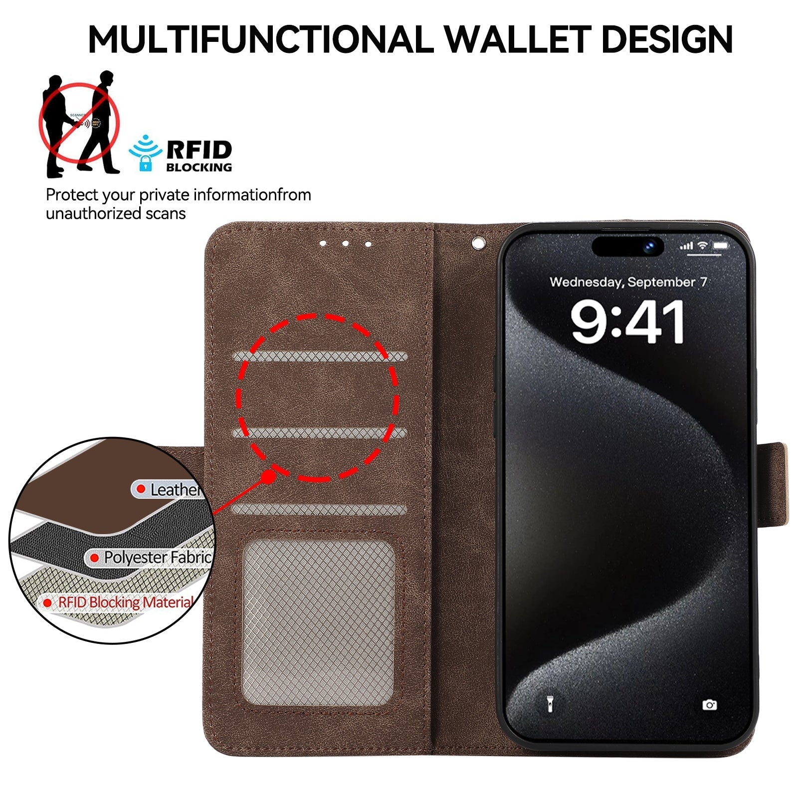 For Redmi 14C 4G ABEEL Frosted Magnetic RFID Leather Phone Case(Brown)