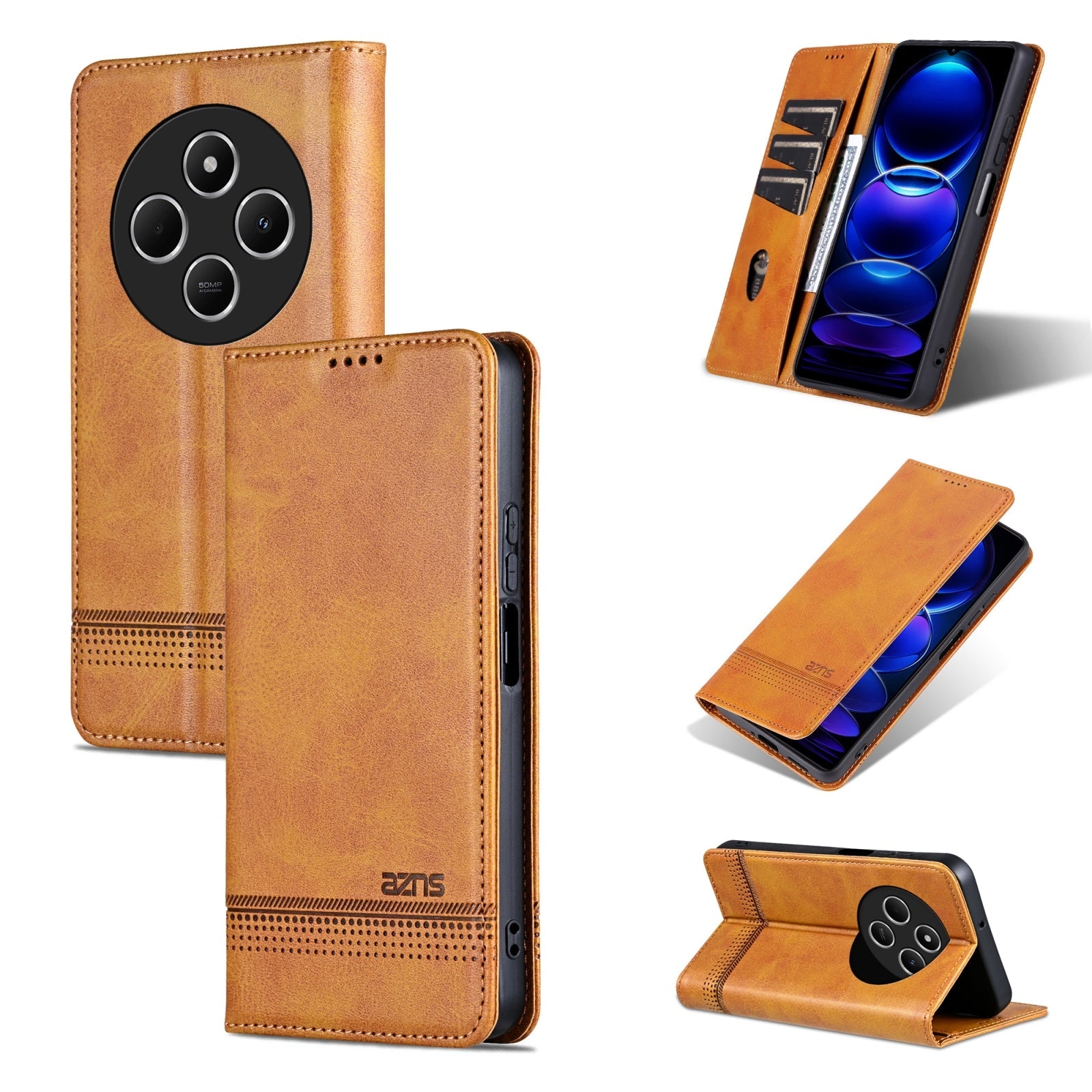 For Redmi 14C 4G AZNS Magnetic Calf Texture Flip Leather Phone Case(Light Brown)