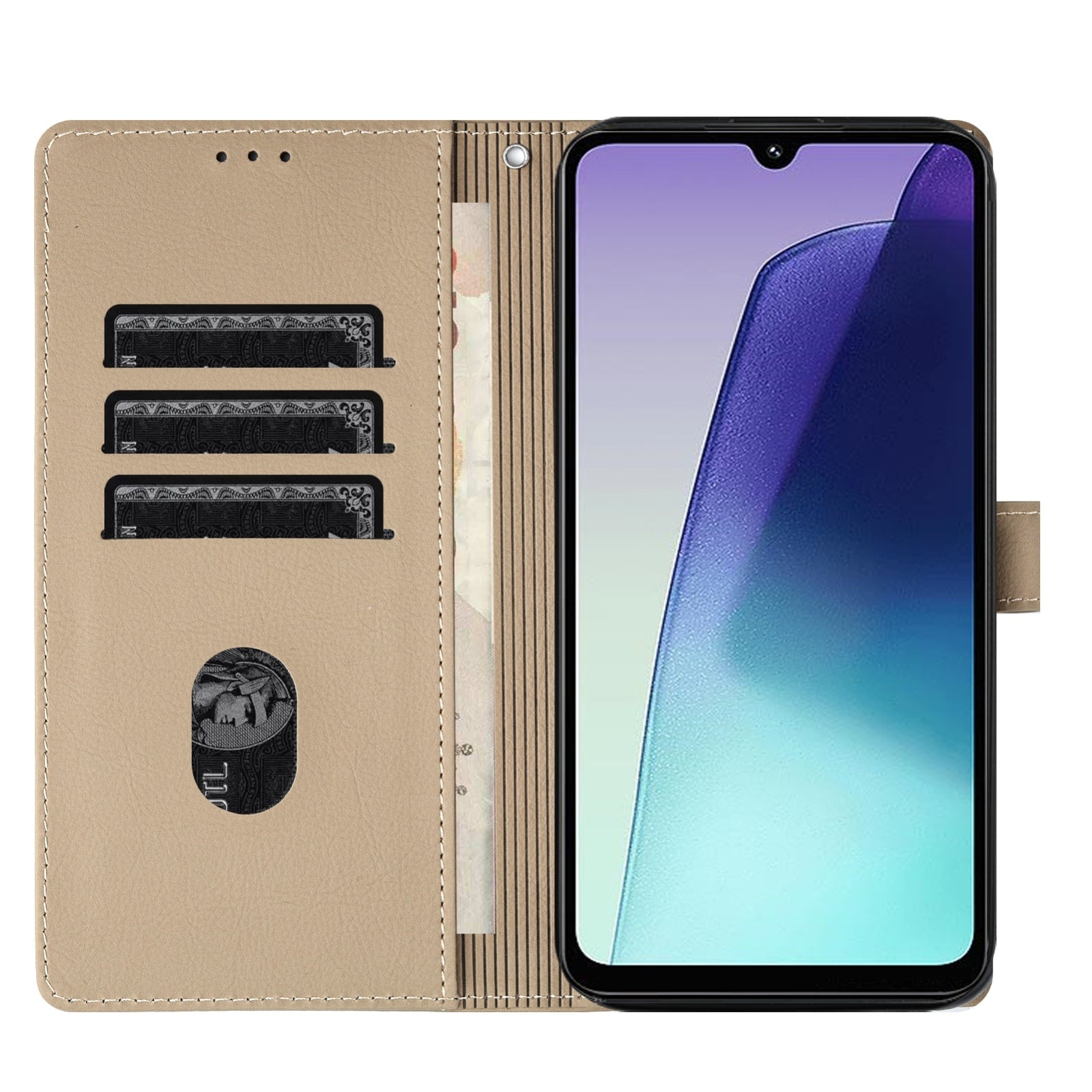 For Redmi 14C 4G Cartoon Elephant Embossed Leather Phone Case(Khaki)