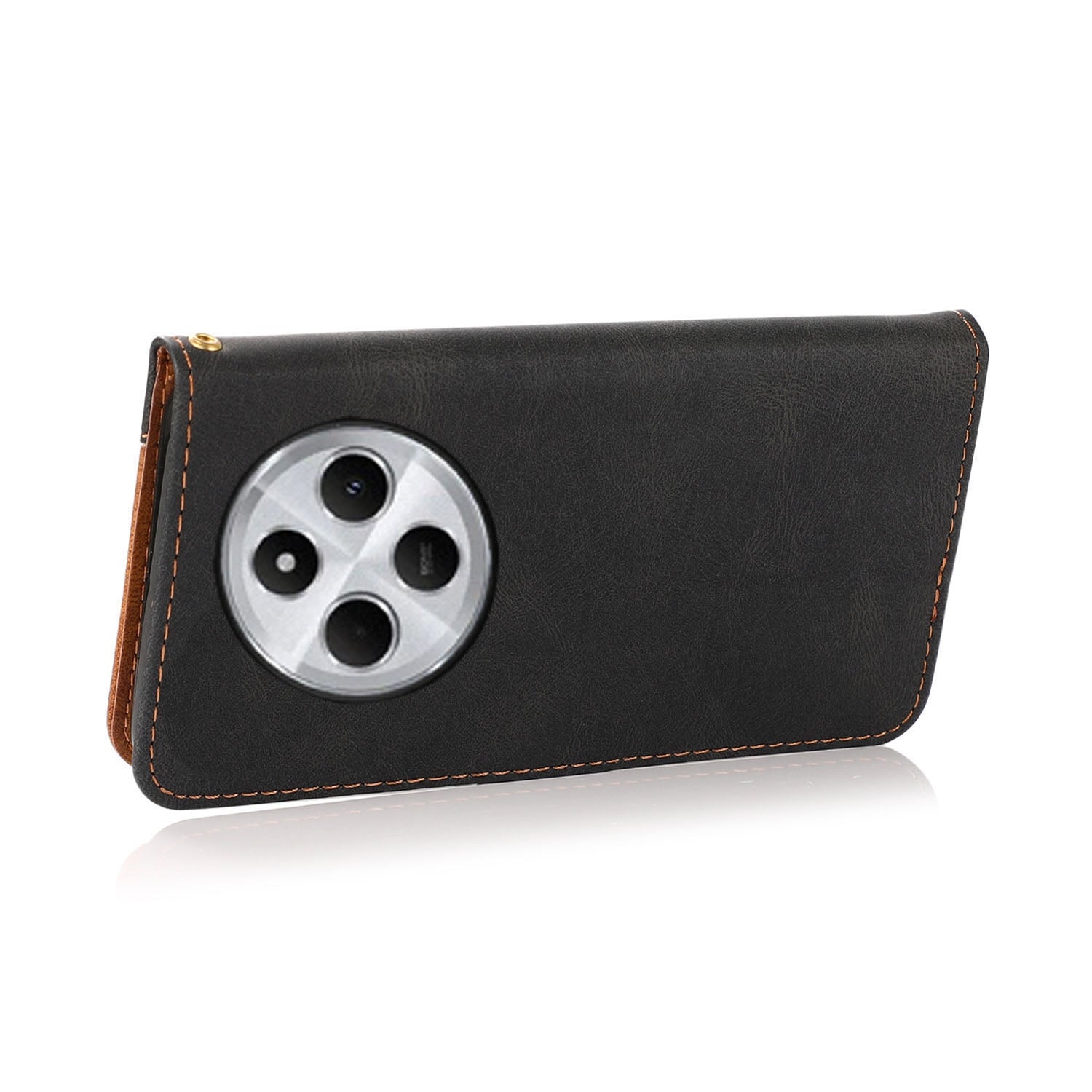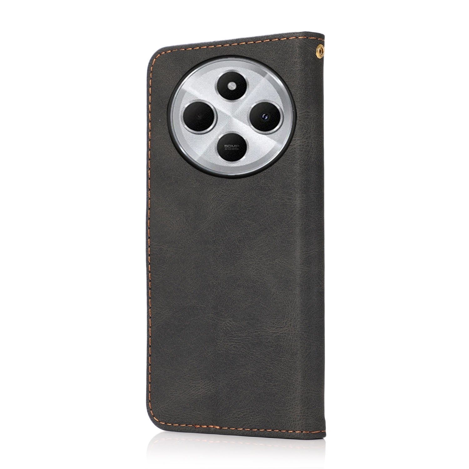 For Redmi 14C 4G Dual-color Stitching Leather Phone Case(Black Brown)