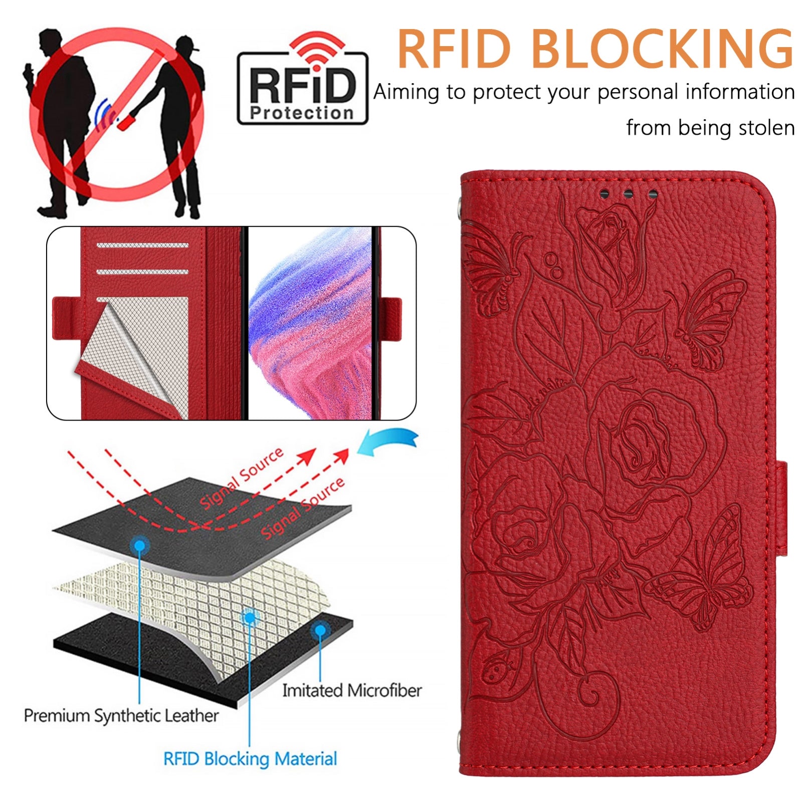 For Redmi 14C 4G Embossed Rose RFID Anti-theft Leather Phone Case(Red)