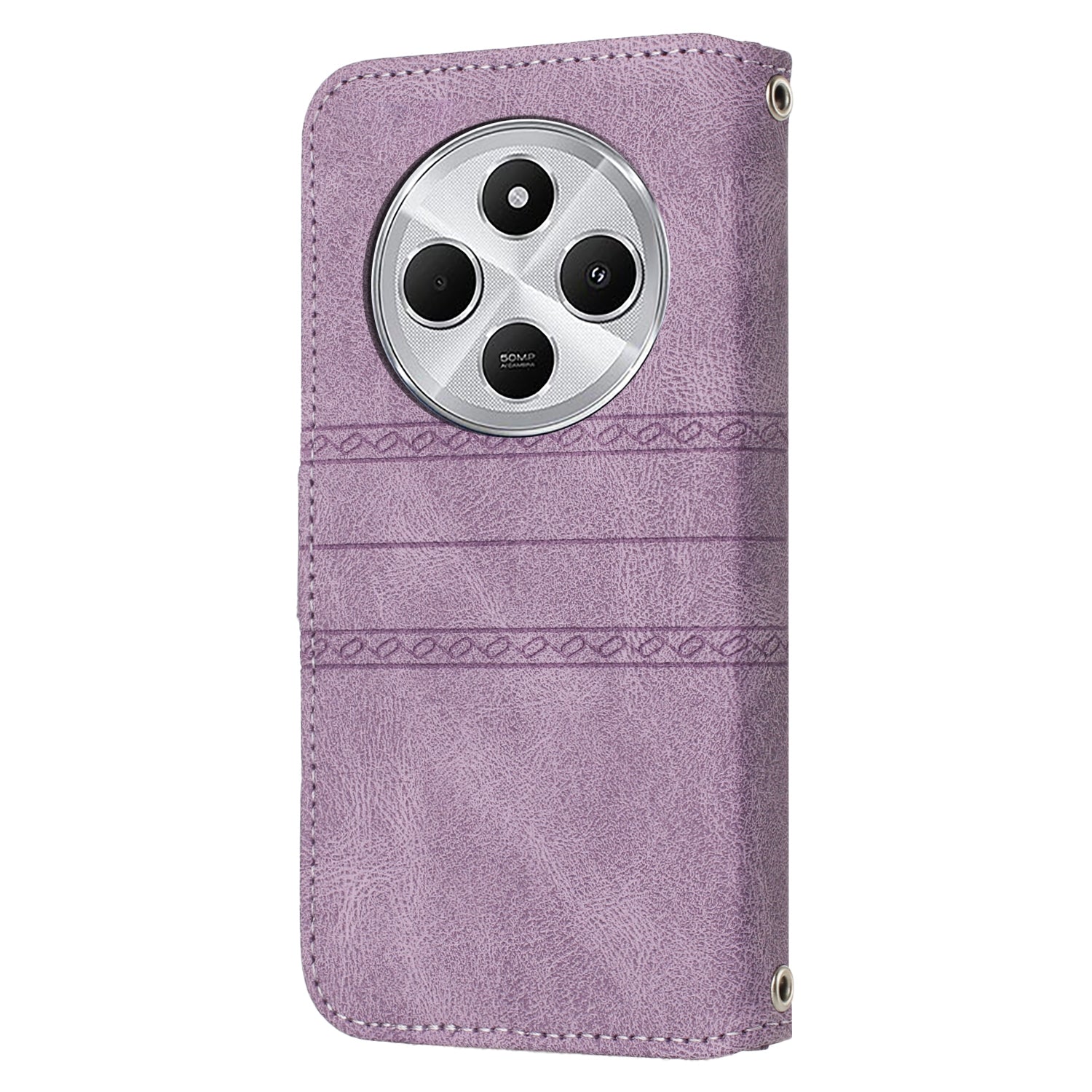 For Redmi 14C 4G Embossed Stripes Skin Feel Leather Phone Case(Light Purple)