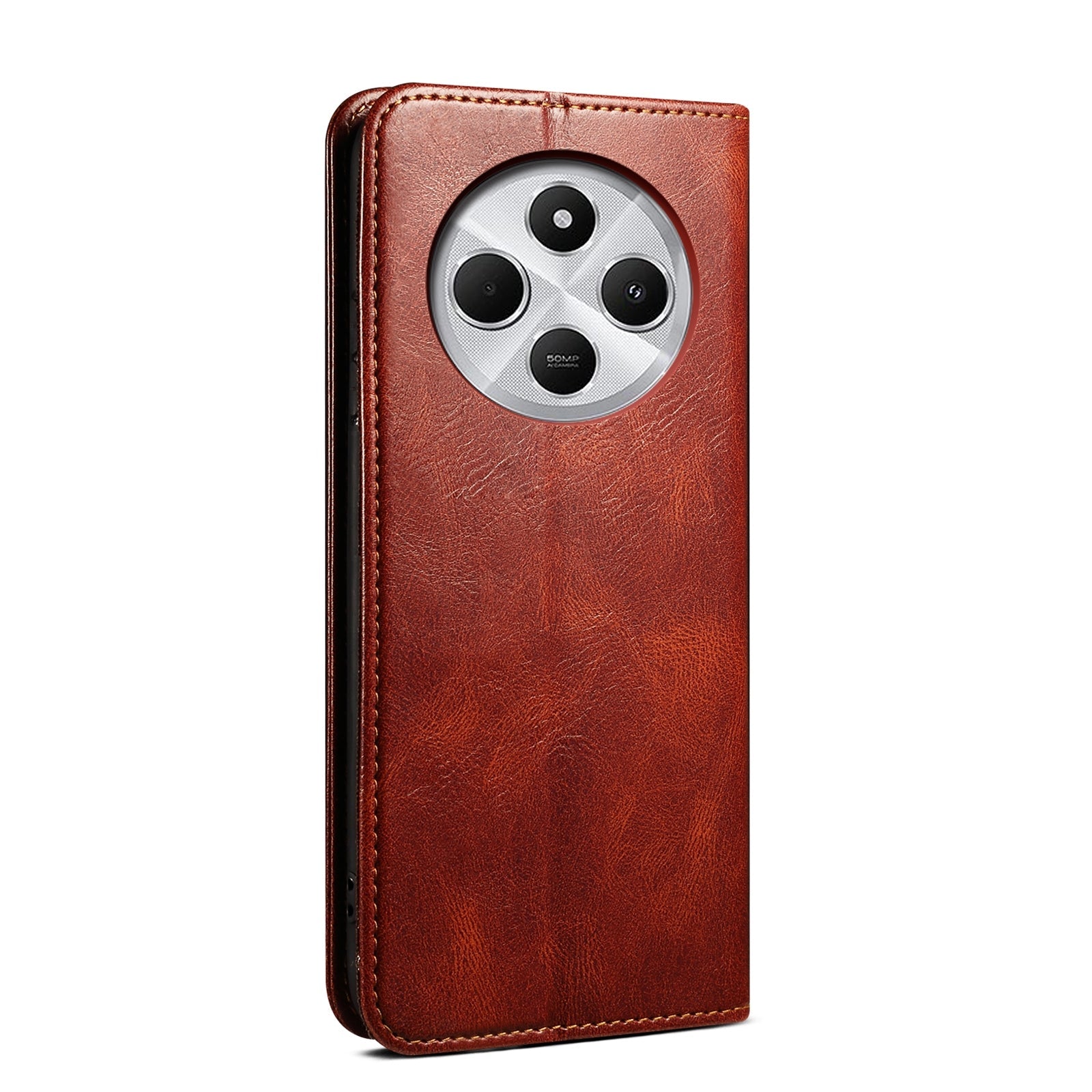 For Redmi 14C 4G Oil Wax Crazy Horse Texture Leather Phone Case(Brown)