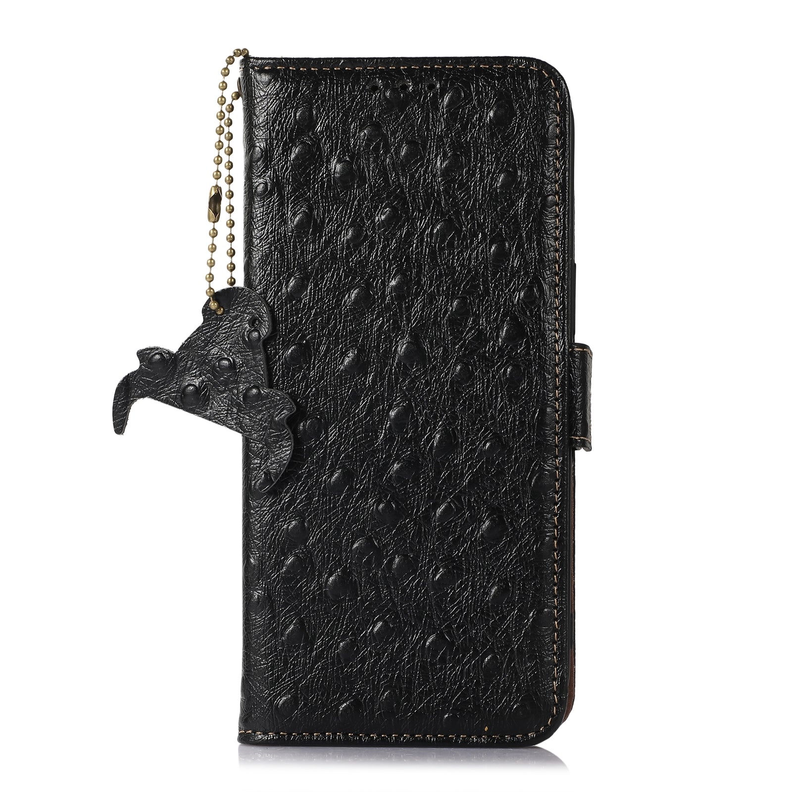 For Redmi 14C 4G Ostrich Pattern Genuine Leather RFID Phone Case(Black)