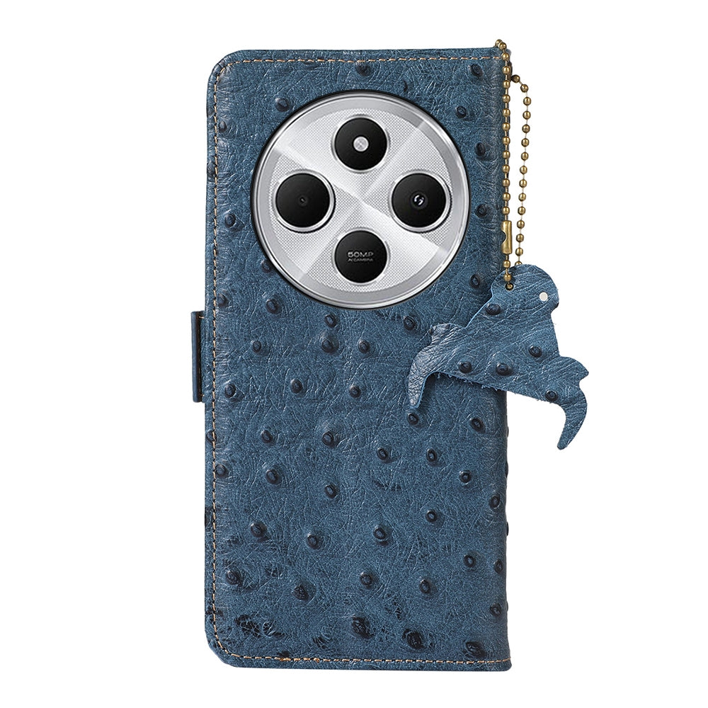 For Redmi 14C 4G Ostrich Pattern Genuine Leather RFID Phone Case(Blue)