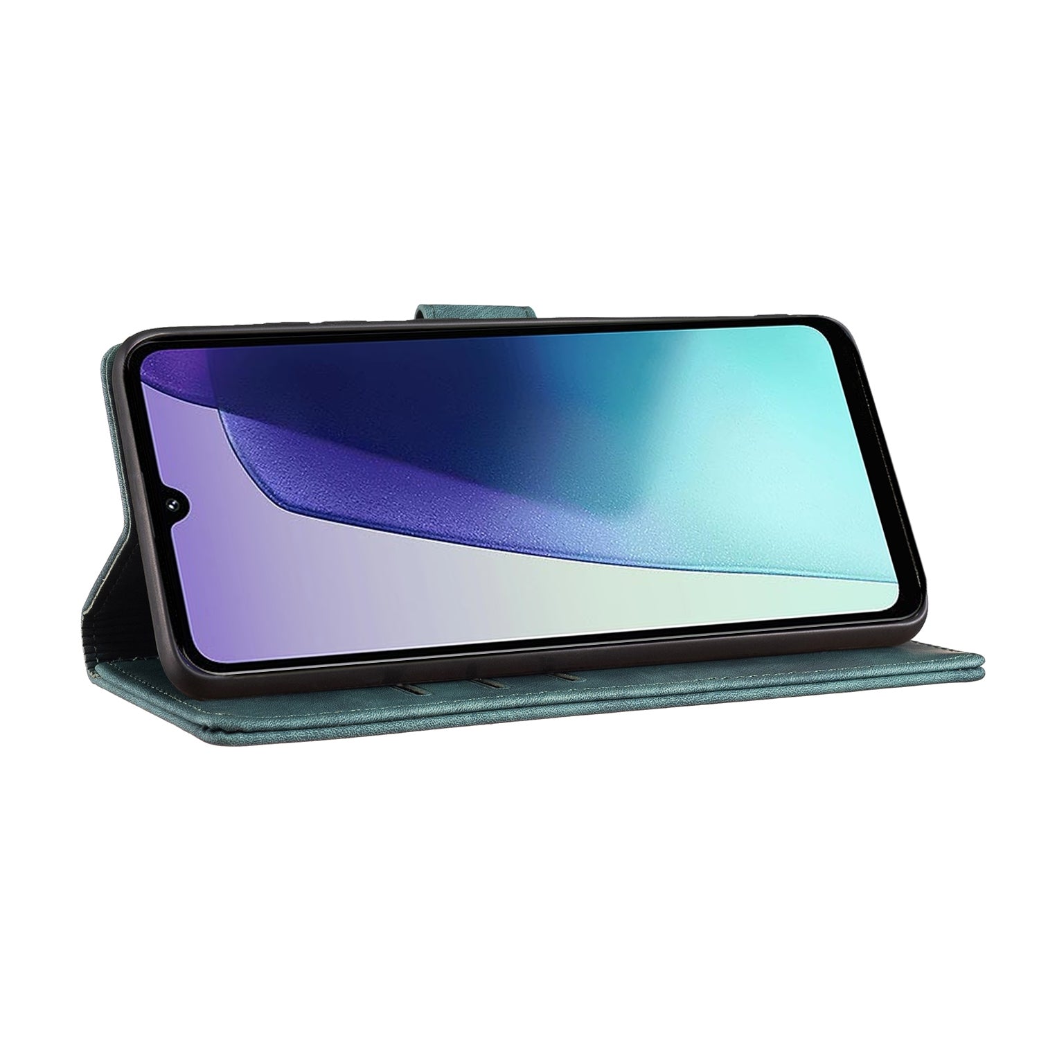 For Redmi 14C 4G Pen Heart Cat Embossed Leather Phone Case(Green)