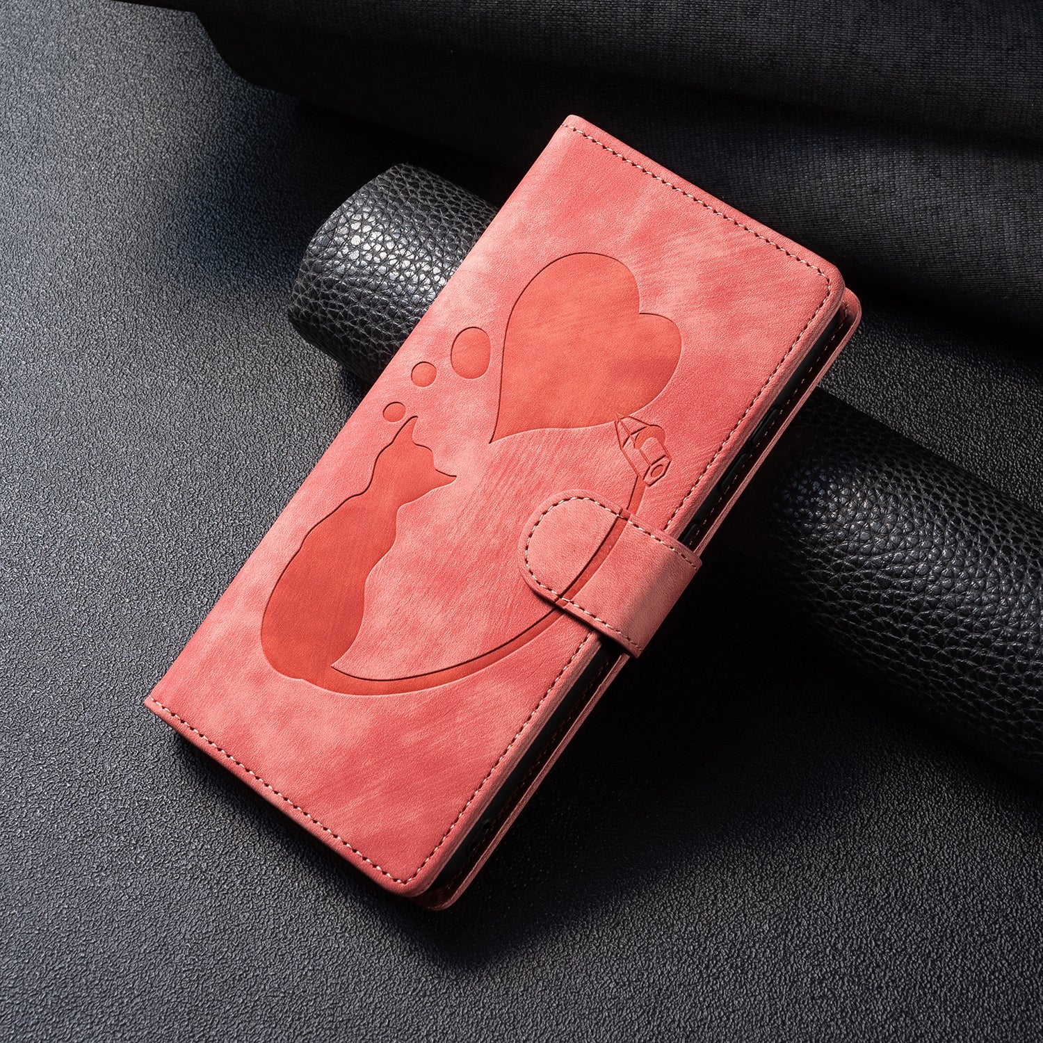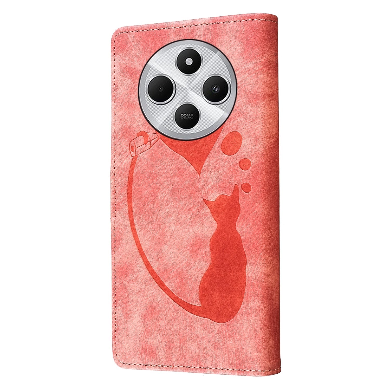 For Redmi 14C 4G Pen Heart Cat Embossed Leather Phone Case(Orange)