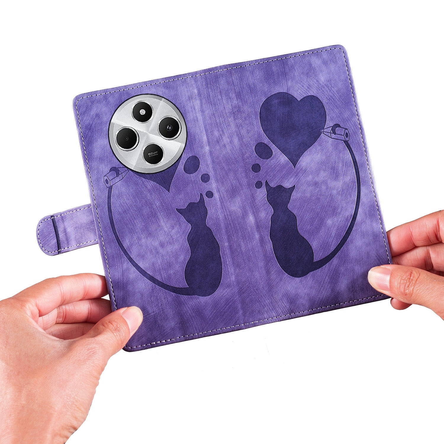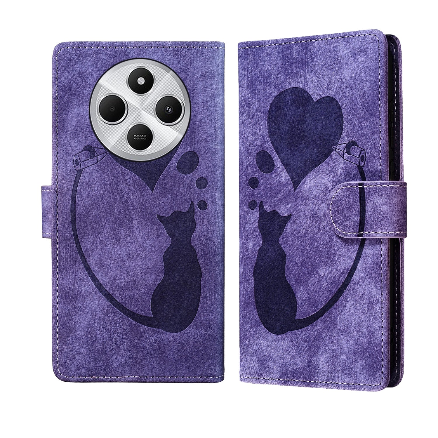 For Redmi 14C 4G Pen Heart Cat Embossed Leather Phone Case(Purple)