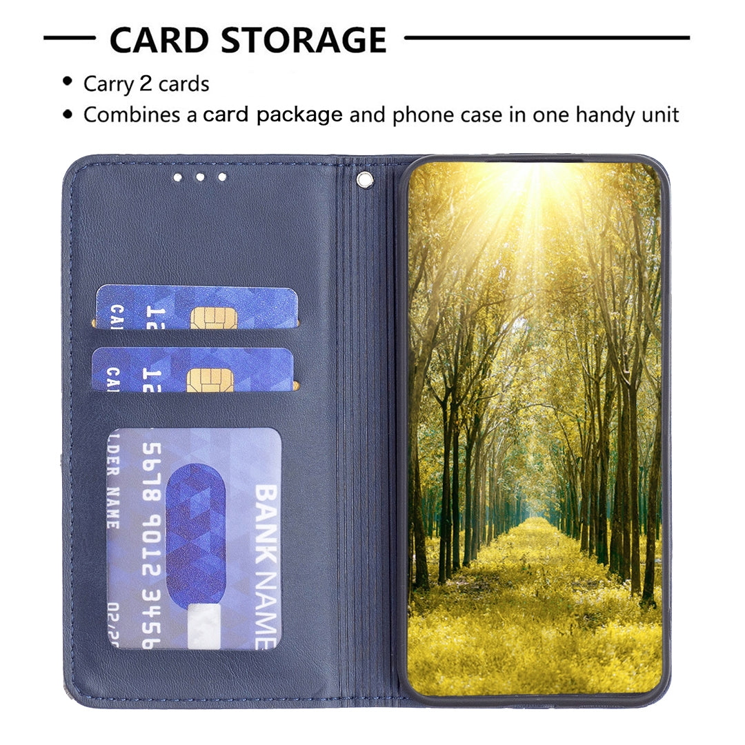For Redmi 14C 4G Rhombus Texture Magnetic Leather Phone Case(Blue)