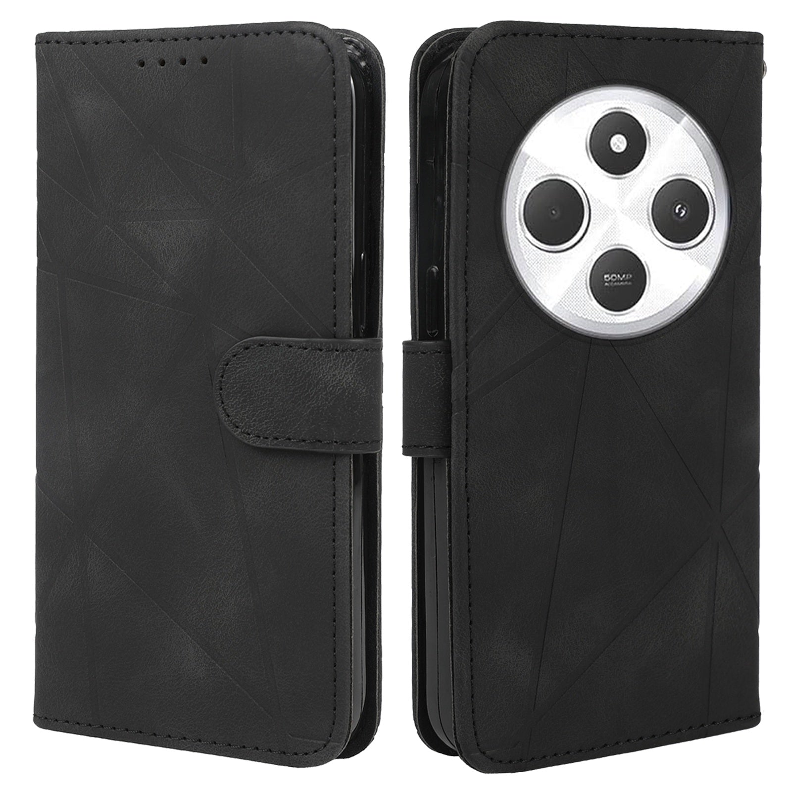 For Redmi 14C 4G Skin Feel Geometric Lines Leather Phone Case(Black)