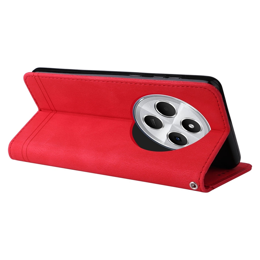 For Redmi 14C 4G Skin Feel Life Tree Metal Button Leather Phone Case(Red)