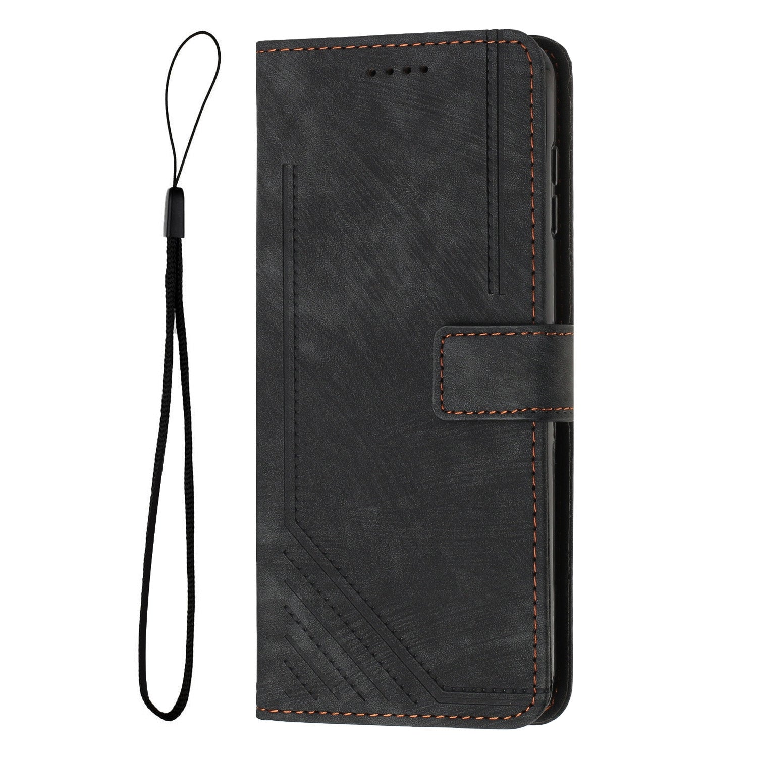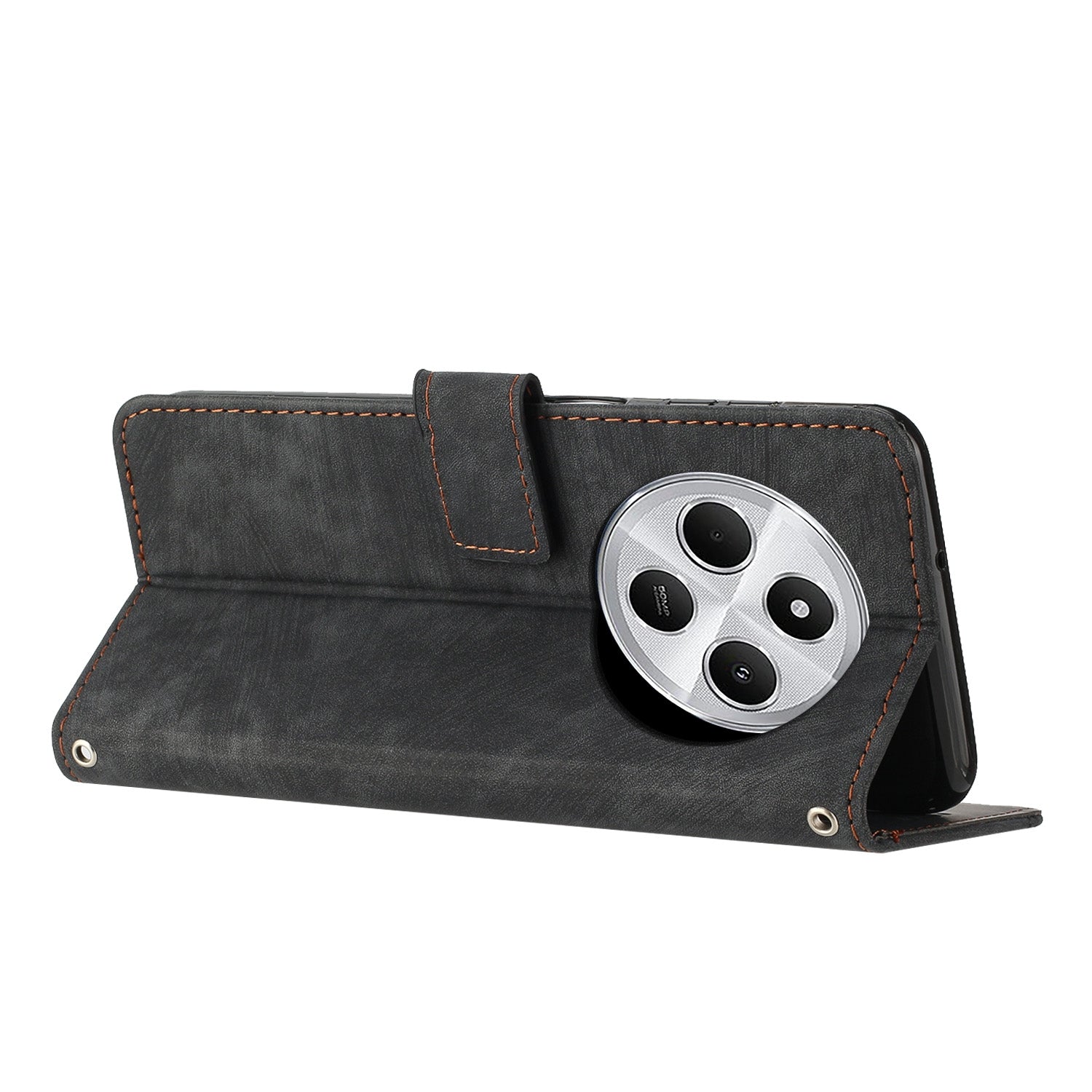 For Redmi 14C 4G Skin Feel Stripe Pattern Leather Phone Case(Black)